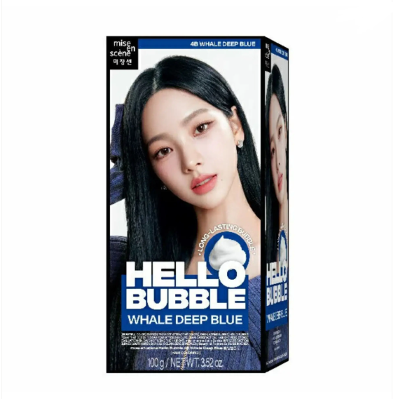 The Mise En Scene Hello Bubble 4B Whale Deep Blue 100g is a vibrant hair dye that offers a stunning deep blue color.