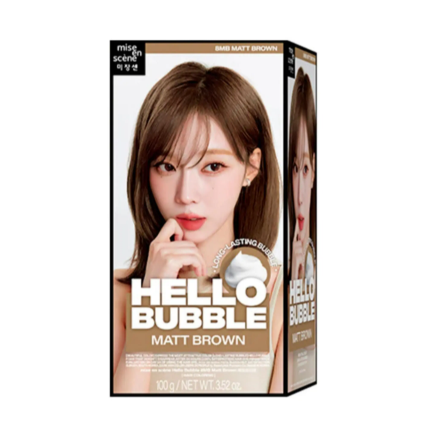 The Mise En Scene Hello Bubble 8MB Matt Brown 100g is a convenient at-home hair dye solution.