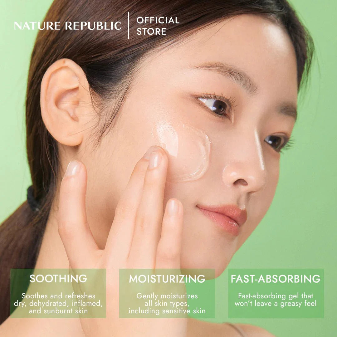 This Aloe Vera Soothing Gel by Nature Republic can be used in many different ways, making it one of the more versatile skincare products.Product of South Korea The best of best million selling gel, this gel made about 30 times of sold outs in a year, and also sold about 1.50 millionMain ingredients aloe Vera extracts 92%Stimulated by the sun, the Aloe Vera relaxes your all reddish and dried face, arm, leg, and whole body, it also gives good moist and it is also rich in vitaminEspecially it is approved by CCOF California certified organic farmers which has real 90% of the aloe Net Wt.